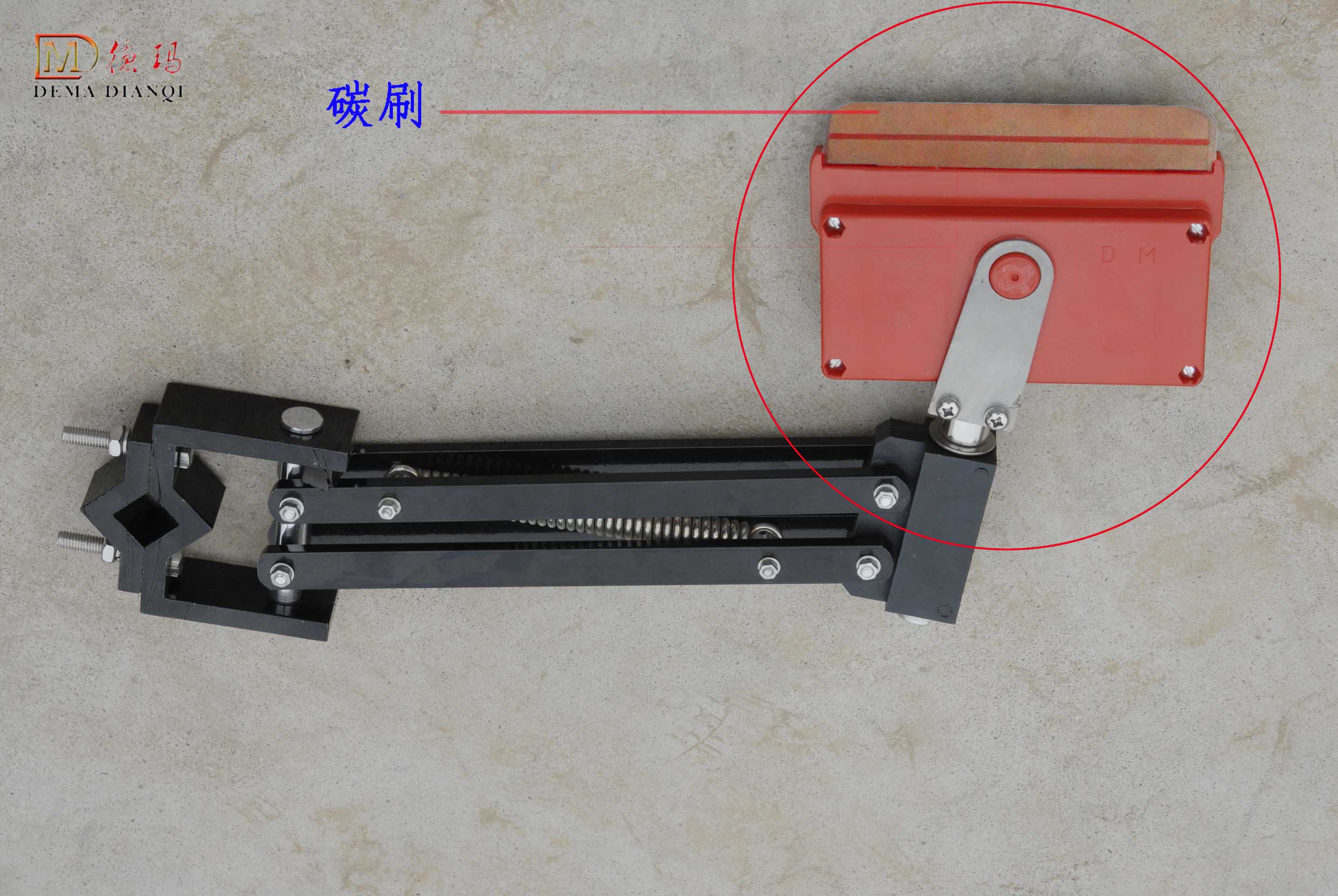 很明顯,客戶購(gòu)買(mǎi)的重型集電器不是德瑪?shù)?,而是?gòu)買(mǎi)的假冒德瑪集電器,以上箭頭標(biāo)注位置明顯與濟(jì)南德瑪生產(chǎn)的集電器不一樣,首先,重型薛片,濟(jì)南德瑪生產(chǎn)的有磨損警戒線;其次,集電器旋轉(zhuǎn)桿位置,濟(jì)南德瑪生產(chǎn)的不是彈簧,而是實(shí)心鋼圈;再次,假冒德瑪集電器支架桿上面是4個(gè)螺栓2根彈簧,濟(jì)南德瑪生產(chǎn)的支架桿是3個(gè)螺栓1根彈簧。同時(shí),該假冒德瑪集電器在紅色薛盒上面,用磨砂出了DM字樣,以此蒙混客戶。正宗濟(jì)南德瑪集電器如下: