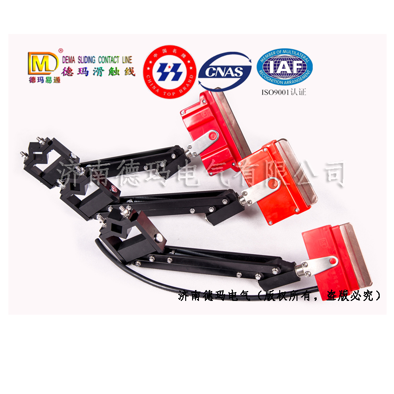 最近市場上有仿冒我們公司生產(chǎn)的集電器,弄得客戶一頭霧水,無法辨別德瑪牌集電器的真?zhèn)?,以假亂真。下面簡單聊聊濟南德瑪電氣有限公司生產(chǎn)的滑觸線專用集電器: